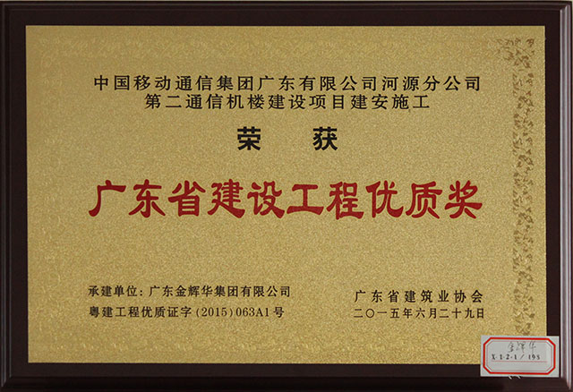 熱烈慶祝我公司榮獲廣東省建設(shè)工程優(yōu)質(zhì)獎