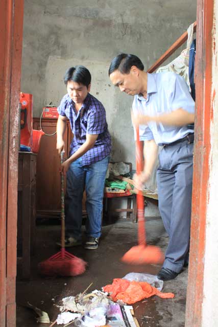 義工慰問團(tuán)一行在馬岡鎮(zhèn)黨委委員謝翠華、副鎮(zhèn)長張邦彥等同志陪同下先探訪了馬岡鎮(zhèn)敬老院。在敬老院里,義工慰問團(tuán)為33位老人家送上禮品和慰問金,帶去節(jié)日的問候,為他們清潔衛(wèi)生,為老人們創(chuàng)造一個良好的衛(wèi)生環(huán)境,并與老人們聊天嘮家常,一起共唱紅歌《沒有共產(chǎn)黨就沒有新中國》,讓老人們度過了一個歡樂祥和的節(jié)日。