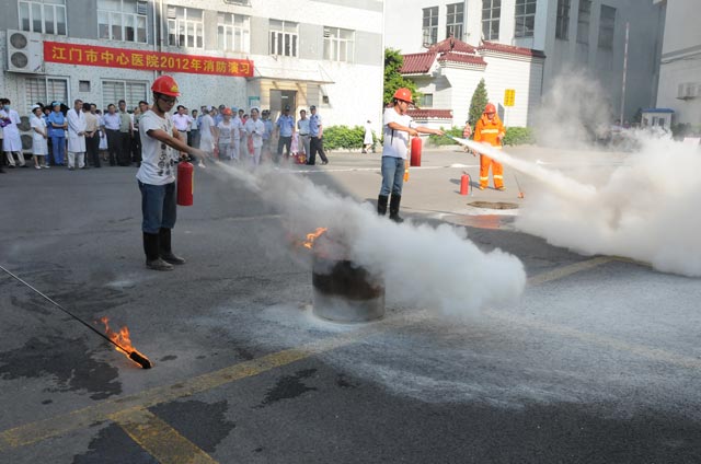 活動現(xiàn)場,設(shè)置了消防體驗、消防技能操法演練、消防知識宣傳、掌握消防知識,學(xué)習(xí)消防技能,營造了一個和諧平安的消防環(huán)境。與此同時,江門市消防處監(jiān)督檢查科與江門市中心醫(yī)院保衛(wèi)科組織演練活動,分為原地著戰(zhàn)斗服、射水打靶、擔(dān)架救人、干粉滅火等項目。