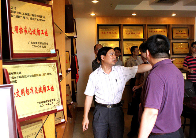 圖為共建活動(dòng)啟動(dòng)儀式出席人員參觀我集團(tuán)的黨工青婦活動(dòng)室,我集團(tuán)公司黨委書記張解矛正在向江門國(guó)稅局黨委書記陳惠眾、開平市組織部副部長(zhǎng)劉威龍、開平市長(zhǎng)沙街道辦事處黨政辦主任陳國(guó)強(qiáng)及其他與會(huì)人員介紹情況