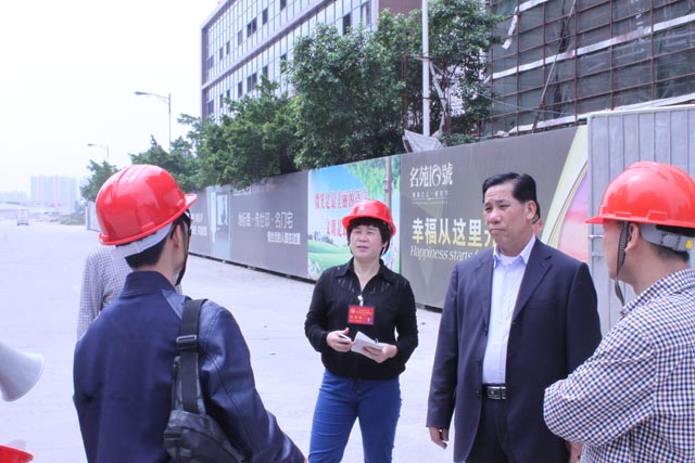 2014年3月25日上午,開(kāi)平市人大常委會(huì)副主任李寶貞同志、長(zhǎng)沙街道黨工委副書(shū)記黎錦洪、長(zhǎng)沙街道黨工委委員陳國(guó)強(qiáng)等人大代表、政協(xié)委員、黨代表一行前來(lái)我集團(tuán)開(kāi)發(fā)、施工的項(xiàng)目:廣東金輝華綜合大廈?名苑10號(hào)走訪(fǎng)調(diào)研。