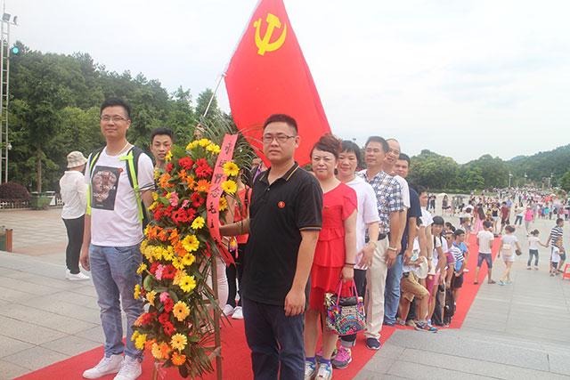 活動(dòng)中,全體黨員同志參觀了偉大領(lǐng)袖毛澤東同志故居,并聽導(dǎo)游講解了毛澤東同志為大眾而舍小家,為革命犧牲了六位親人,為理想不屈不撓,困難和逆境不消沉不動(dòng)搖,經(jīng)受住各種風(fēng)險(xiǎn)和困難考驗(yàn);使大家感動(dòng)至極。到了毛澤東銅像廣場(chǎng),向毛澤東同志銅像敬獻(xiàn)了精心準(zhǔn)備的花籃,全體黨員列隊(duì)向毛澤東銅像三鞠躬,并圍繞銅像緩步而行,仰望偉人雄姿,感受一代偉人的驕人風(fēng)采和無往不前的巨大力量。