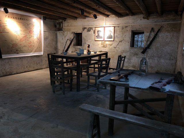 簡陋的桌椅、古老的汽燈、古樸的八角碗,這些就是當(dāng)年司令部的擺設(shè)。在以前這么艱苦的條件下,我們的指戰(zhàn)員就在這里研究敵情、制定作戰(zhàn)計劃,擊退了敵人的無數(shù)次進攻。