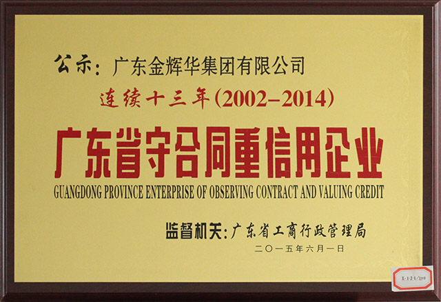 我集團(tuán)公司連續(xù)十三年獲得廣東省"守合同重信用企業(yè)"榮譽(yù)稱號