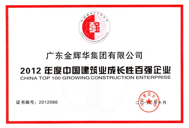 我集團公司榮獲“2012年度中國建筑業(yè)成長性百強企業(yè)”稱號