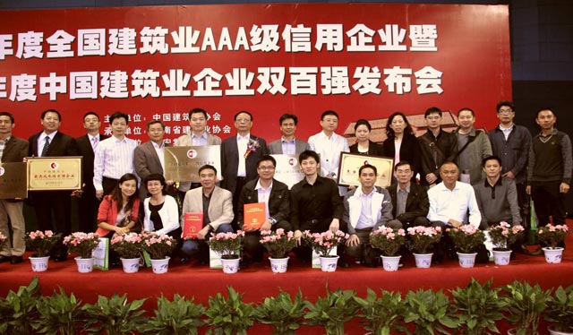 10月22日,我集團公司代表龍劍恒參加了中國建筑業(yè)協(xié)會在鄭州召開的2012年度全國建筑業(yè)AAA級信用企業(yè)暨2011年度中國建筑業(yè)企業(yè)雙百強發(fā)布會。中建協(xié)副會長徐義屏,住房和城鄉(xiāng)建設部建筑市場監(jiān)管司綜合處處長王瑋出席會議并講話。會上,中國建筑業(yè)協(xié)會隆重發(fā)布了2012年度全國建筑業(yè)AAA級信用企業(yè)和2011年度中國建筑業(yè)企業(yè)競爭力百強、中國建筑業(yè)企業(yè)最具成長性百強的評價結果。我集團公司繼2010年度再