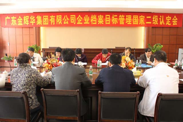 2010年12月24日上午“廣東金輝華集團(tuán)有限公司企業(yè)檔案目標(biāo)管理國家二級認(rèn)定會”在集團(tuán)技術(shù)中心會議室舉行,我司最終以88.2分的高分通過了企業(yè)檔案目標(biāo)管理國家二級認(rèn)定。