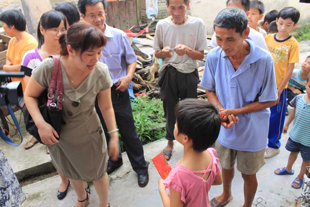 離開敬老院后,義工慰問團(tuán)還到了馬岡鎮(zhèn)橫安村委會曲水圍村慰問一名生長在貧困家庭的八歲小女孩黃曉萍,在該小女孩家中,我們認(rèn)真傾聽了她的心聲,送上禮品和慰問金,鼓勵她要克服困難,努力學(xué)習(xí),成長為對國家和社會有用的人才,讓這個孩子幼小的心靈感知社會對她的關(guān)愛。
