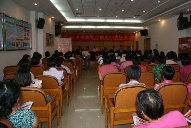 為了增強(qiáng)女職工的自我保健意識(shí),普及女性生理健康知識(shí),促進(jìn)女職工的身心健康,7月16日下午,市總工會(huì)在廣東金輝華集團(tuán)公司舉辦女職工健康知識(shí)講座,邀請(qǐng)全國健康素質(zhì)教育工程活動(dòng)公益講師團(tuán)的孟優(yōu)賢教授前來主講,共80多名女職工參加了講座。市總工會(huì)紀(jì)檢組長盧銳權(quán),廣東金輝華集團(tuán)公司黨委書記張解矛、工會(huì)主席陳維民分別作了講話。講座由市總工會(huì)女職委副主任許素群主持。