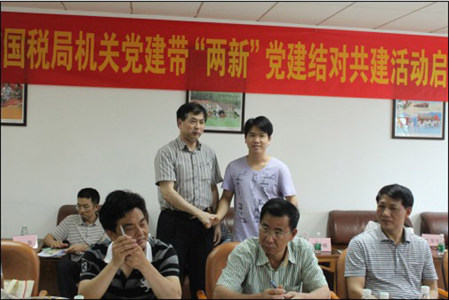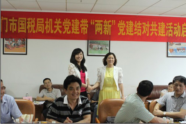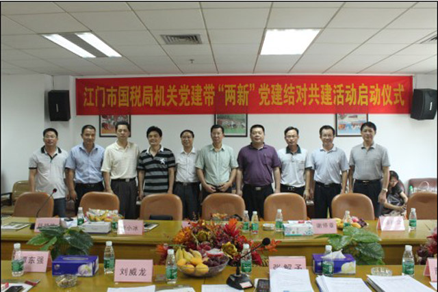 啟動(dòng)儀式上,首先江門市國(guó)稅局的人員參觀了我集團(tuán)的黨工青婦活動(dòng)室、榮譽(yù)室。座談會(huì)上,雙方互相介紹了各自出席此次儀式的人員,后共建雙方的黨委分別對(duì)各自的黨委概況進(jìn)行了介紹,使共建雙方更清楚地了解對(duì)方。儀式上,江門市國(guó)稅局機(jī)黨委向我集團(tuán)黨委贈(zèng)送了有關(guān)黨建工作的書籍,如十七大會(huì)議精神理解等。為切實(shí)實(shí)現(xiàn)共建目標(biāo),雙方根據(jù)各自黨支部的實(shí)際情況實(shí)現(xiàn)了江門市國(guó)稅局機(jī)關(guān)黨委各支部與我集團(tuán)黨委各支部的共建結(jié)對(duì),共同明確了通過結(jié)對(duì)共建活動(dòng)目標(biāo):爭(zhēng)創(chuàng)全省乃至全國(guó)的‘兩新”組織黨建工作示范點(diǎn)。開平市委組織部劉威龍副部長(zhǎng)在啟動(dòng)儀式上,對(duì)“關(guān)于開展機(jī)關(guān)黨建帶‘兩新’黨建結(jié)對(duì)共建活動(dòng)”的文件精神進(jìn)行了解釋,并表示這是當(dāng)前黨建的重要工作。長(zhǎng)沙街道辦事處黨工委委員陳國(guó)強(qiáng)主任在啟動(dòng)儀式上表示:將盡全力支持江門國(guó)稅局的“機(jī)關(guān)黨建帶‘兩新’黨建”的結(jié)對(duì)共建活動(dòng)。