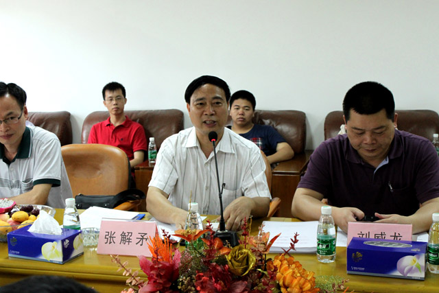 圖為我集團(tuán)黨委書記張解矛在介紹我集團(tuán)黨委的情況