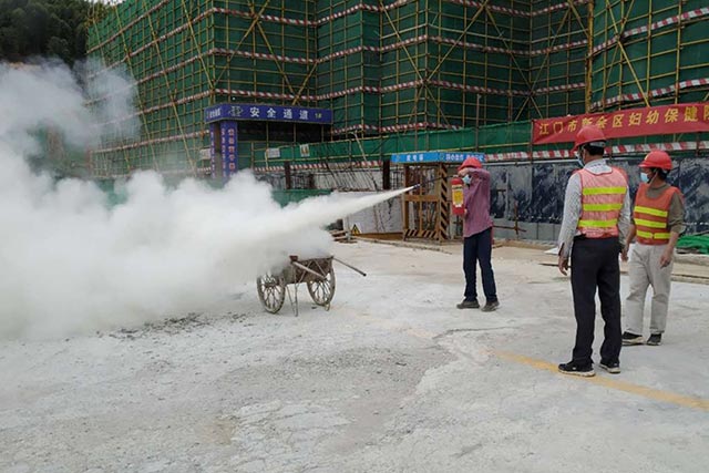 2、消防演練:江門市新會(huì)區(qū)婦幼保健院新院工程消防演練,此次消防演練主要針對(duì)建筑工地人員集中、易燃材料多、用電負(fù)荷大、作業(yè)人員消防意識(shí)差、消防技能弱等特點(diǎn)進(jìn)行培訓(xùn)、宣教,目的使現(xiàn)場(chǎng)作業(yè)人員增強(qiáng)消防安全意識(shí)、掌握消防常識(shí)、了解操作流程,具備檢查消除火災(zāi)隱患能力、組織撲救初期火災(zāi)能力及在火勢(shì)控制不住的情況下如何逃生、避免人員傷亡的能力。圍繞火災(zāi)隱患檢查預(yù)防的方法、火災(zāi)發(fā)生的原因、用火安全事故的防范、發(fā)生火災(zāi)時(shí)應(yīng)采取何種應(yīng)急措施等內(nèi)容進(jìn)行消防知識(shí)講解,闡述了防火、滅火的技巧和方法,講述滅火器、消火栓的使用方法及救火要點(diǎn)。并在工地內(nèi)選擇一處假設(shè)著火點(diǎn),在場(chǎng)人員通過(guò)專業(yè)的講解、觀看正確操作方法及逐一實(shí)際操作,掌握了消防知識(shí)及滅火器的正確使用方法,提高了現(xiàn)場(chǎng)作業(yè)人員防火救火、自防自救能力。