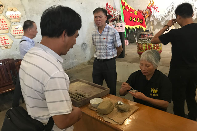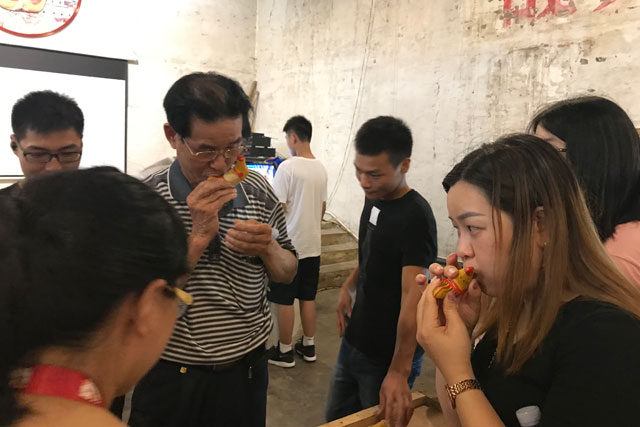 最后全體人員開車前往水口鎮(zhèn)聯(lián)竹村參觀開平非物質(zhì)文化鎮(zhèn)濠泥雞體驗展。